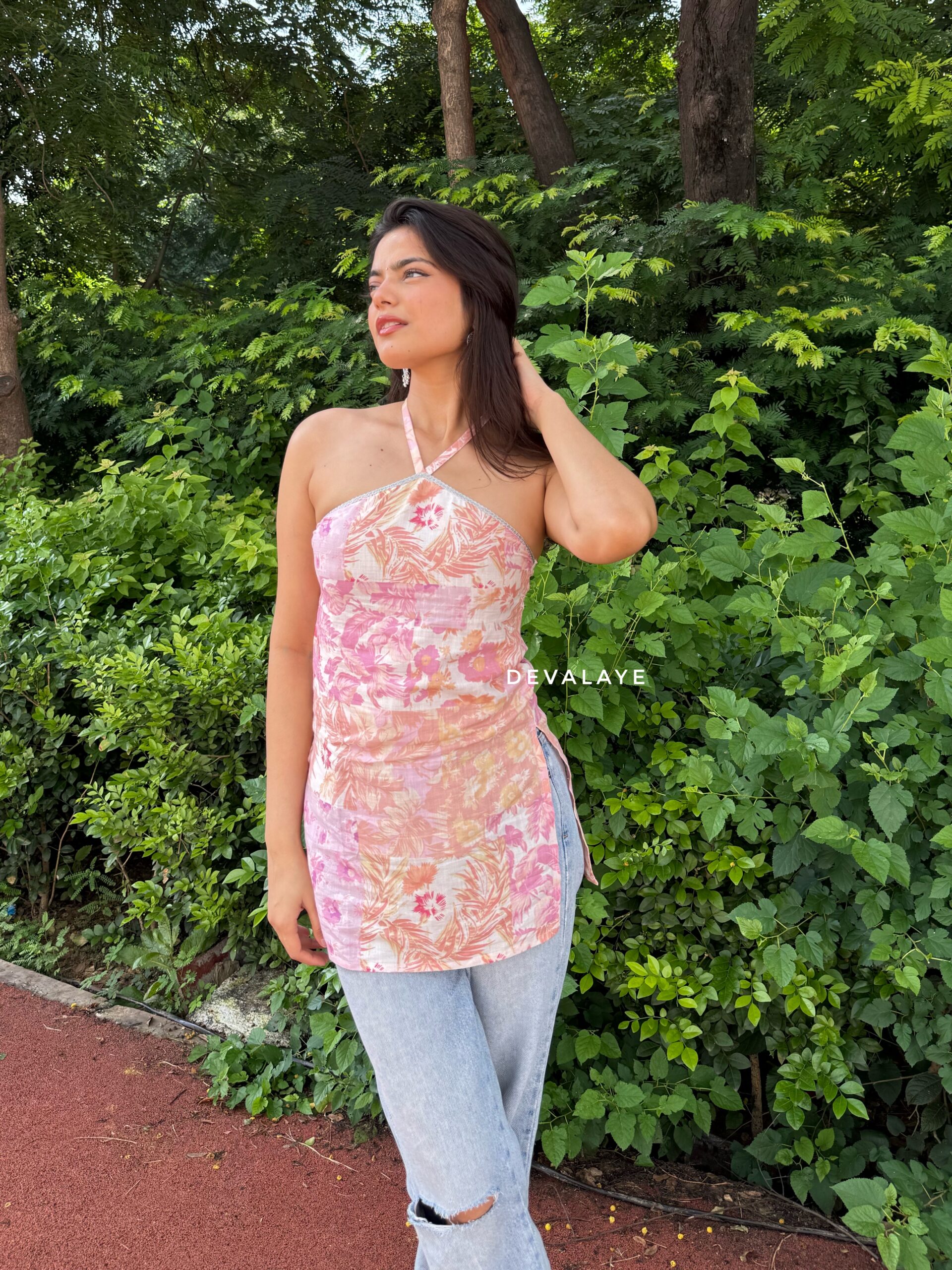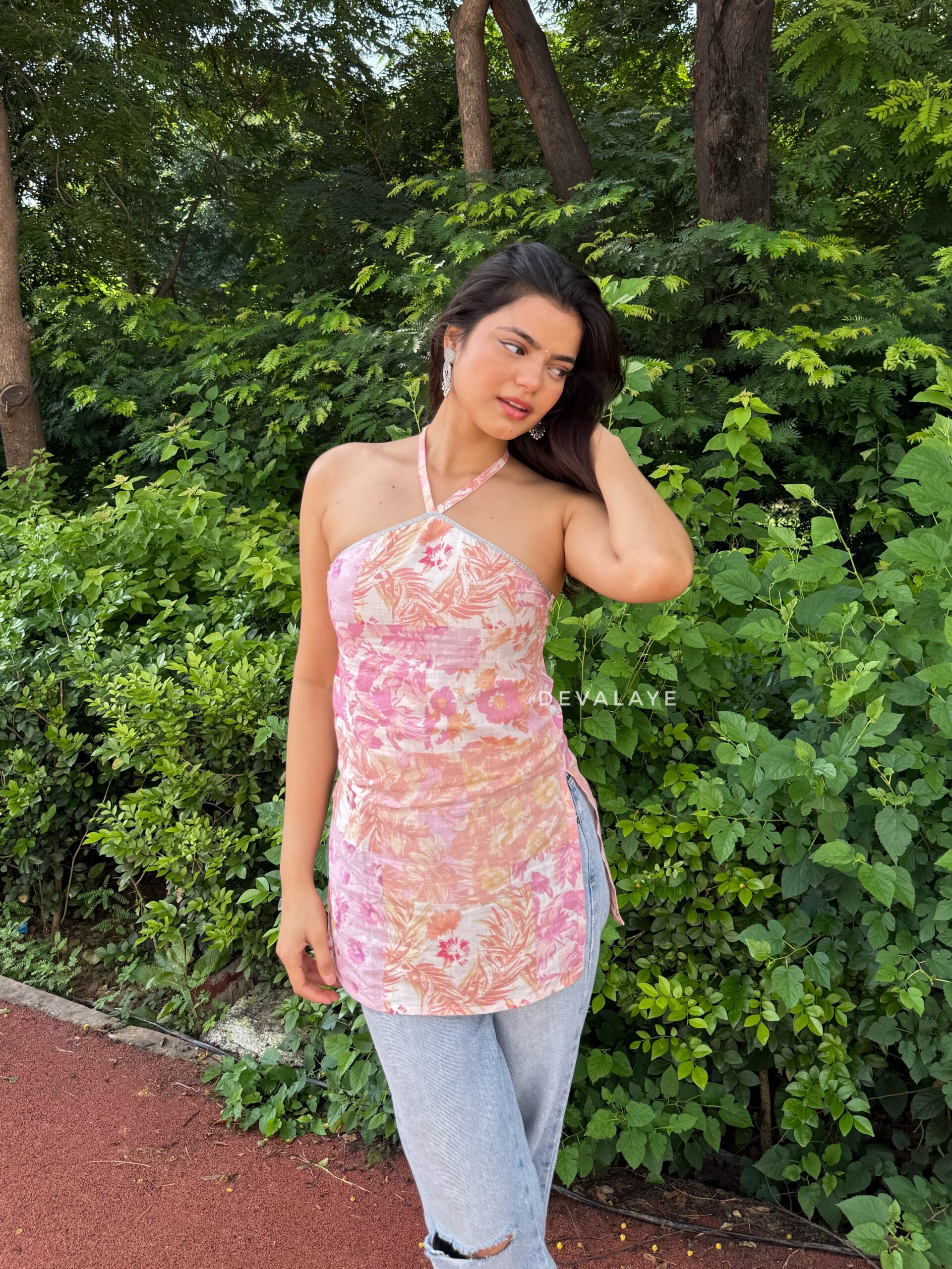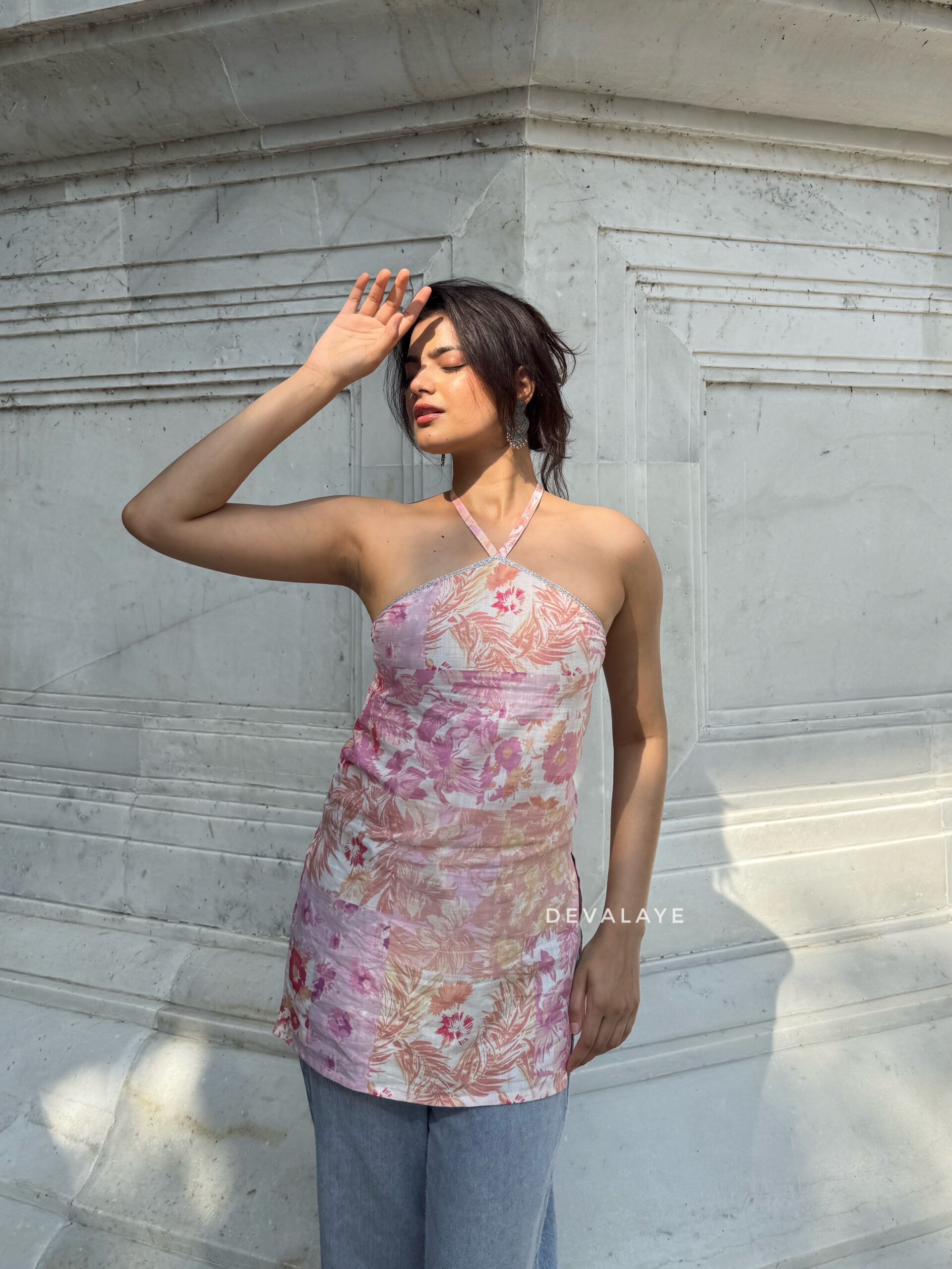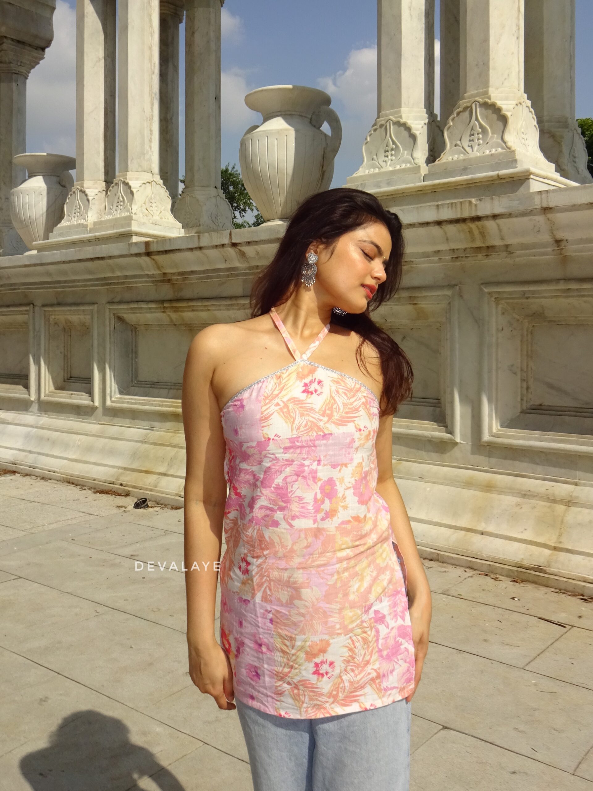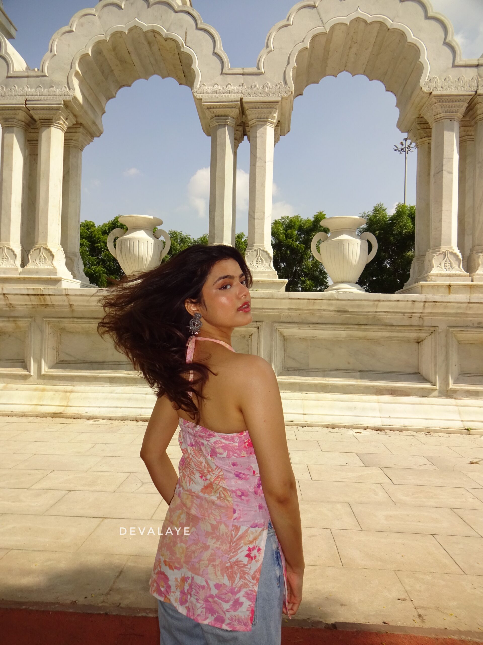 Introducing the all-new Alisha Halter Top – a beautiful abstract floral print on soft cotton fabric. Designed for the modern, chic woman, it features a halter neckline adorned with delicate silver lace detailing that gives just the right amount of sparkle✨. And of course the halter heck silhouette has a “backless design” with an elastic ruffle that gives YOU the perfect fit! Ideal pick for summer days, beach outings, or casual city strolls. Totally “Desi Girl” coded – because sunshine, waves, and good vibes are non-negotiable! 🌸☀️🌴