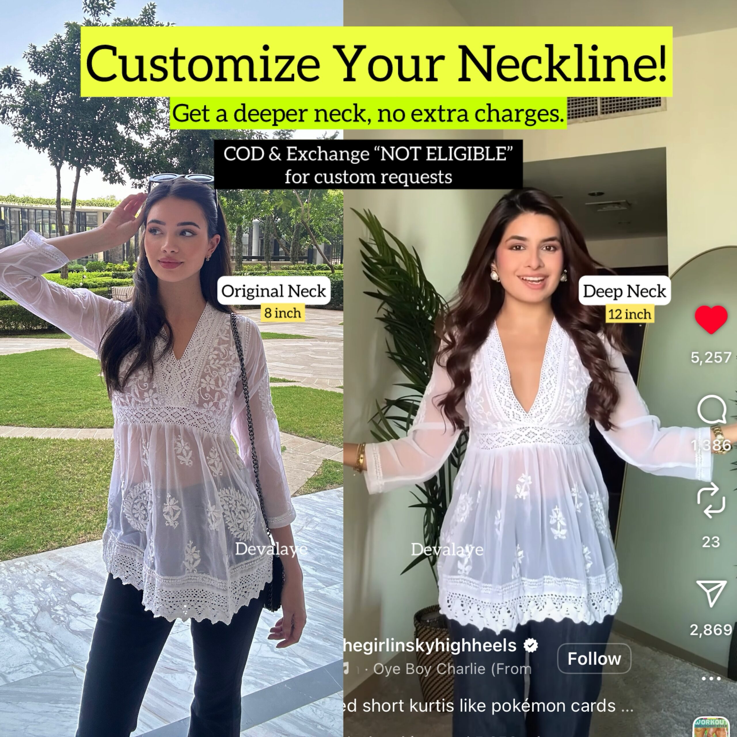Shop our stunning White Chikankari Lace Top, featuring beautiful floral embroidery in white threading. This lace top features a paisley embroidered motifs along the hemline, adding the perfect touch of elegance to any outfit.