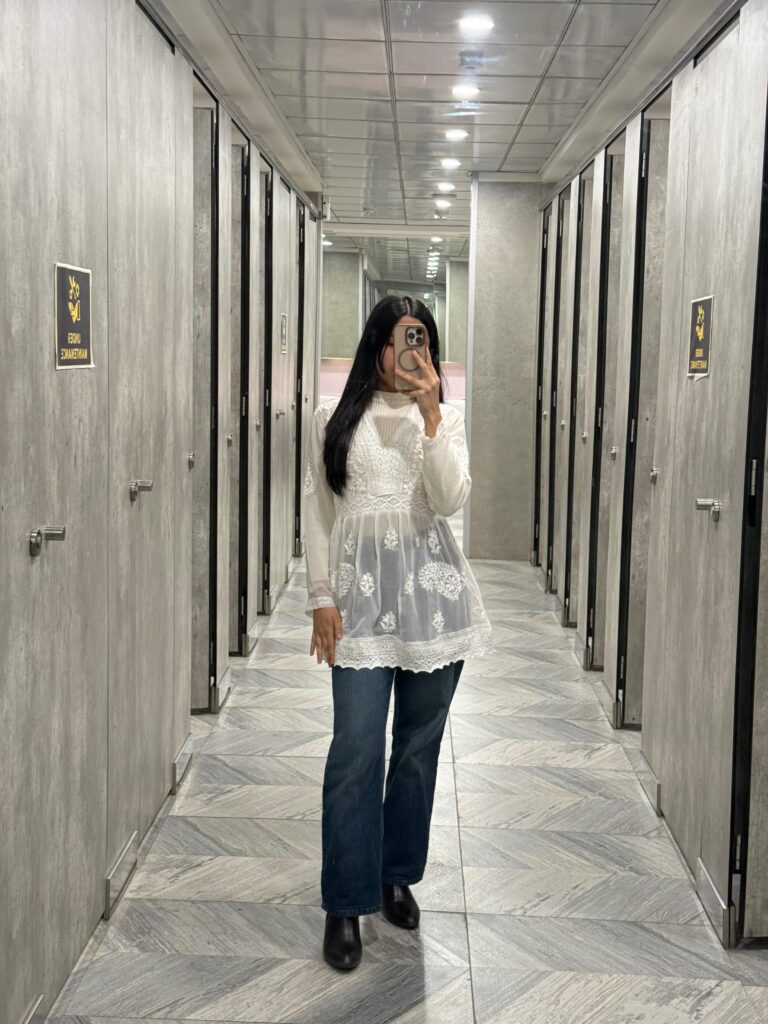 It’s honestly so hard for me to find the perfect fit because I’m quite lean—but this kurta fit like a dream! ✨ The chikankari work is incredibly intricate and elegant, and I’ve been getting compliments left, right, and center every time I wear it. 🤍 Absolutely loved it!